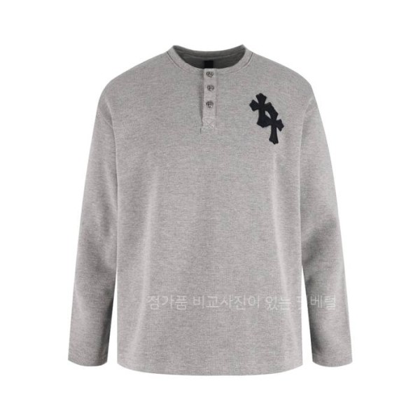 (C25) 크*하츠 십자가 패치 와플 헨리넥 폴로 긴팔티셔츠