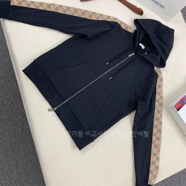 (C24) 버*리 체크 트리밍 후드집업 자켓