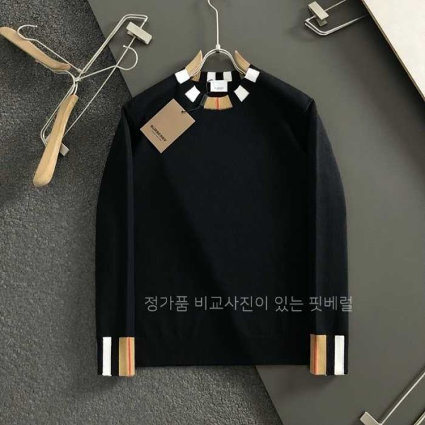 버*리 배색포인트 양모라운드 니트 mm국내배송Color 블랙Size 95. 100. 105. 110. 115