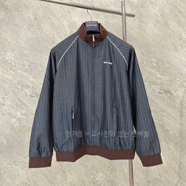 (C33) 미*미우 핀스트라이프 지퍼 블루종 자켓