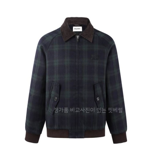 (C25) 미*미우 체크 트윌 코듀로이 카라 자켓