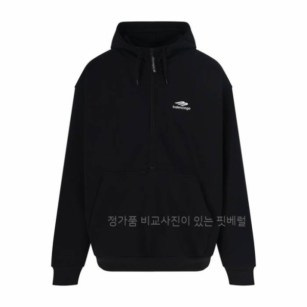 (C25) 발*시아가 3B 스포츠 아이콘 하프 지퍼 후드티셔츠