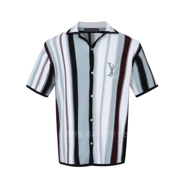 (C25) 루*비통 스트라이프드 크로셰 반팔 셔츠