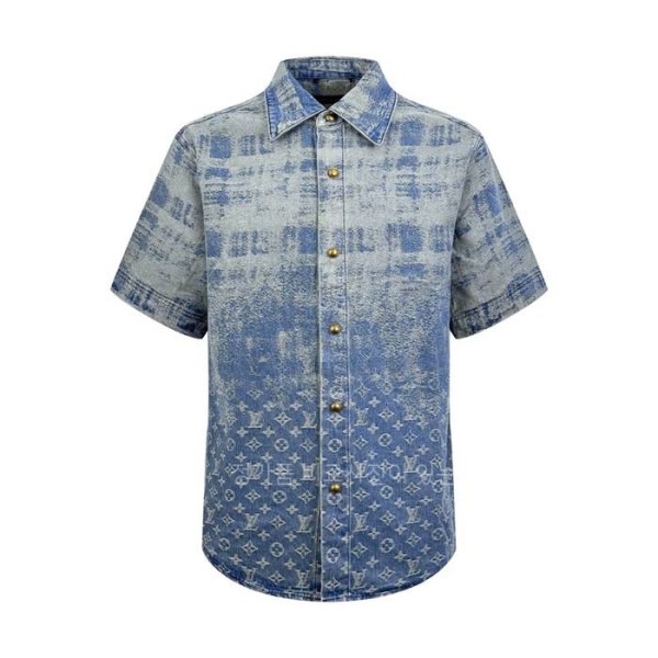 (C25) 루*비통 데님 쇼트 슬리브드 반팔 셔츠